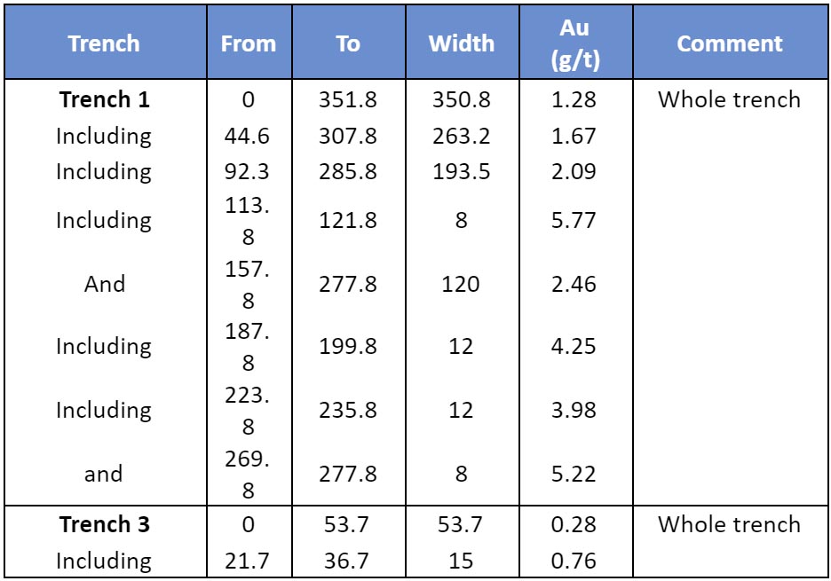 Table 1 - Significant trench intersections