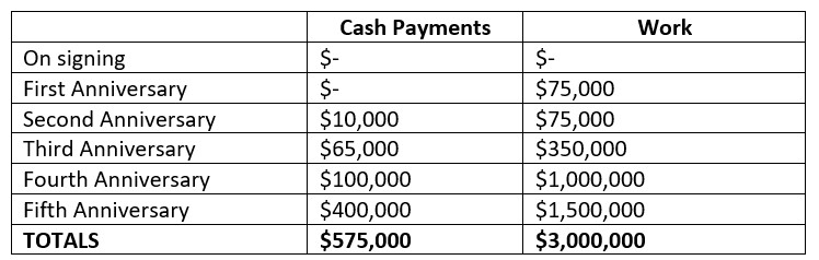 Acme will also make milestone cash payments to underlying vendors of the Lemon Lake property subject to the following provisions: